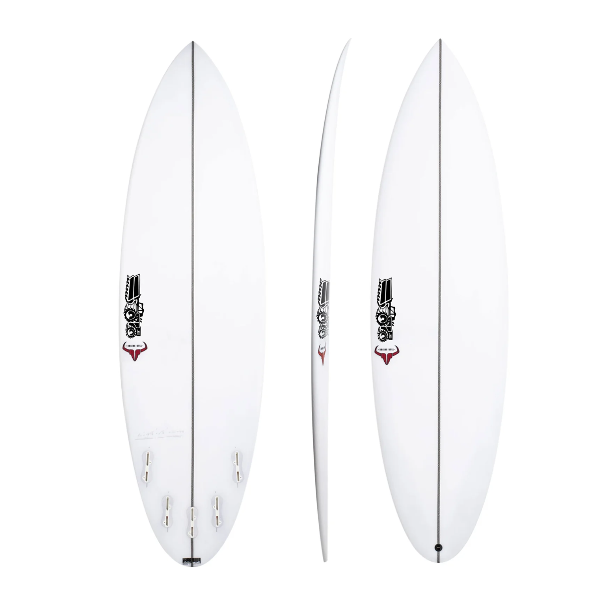 A pulled-in tail gives you control for turns and barrels in more critical conditions, while a touch more curve in the exit rocker adds manoeuvrability and release out of the lip. Moderate single concave starts under front foot, moving to double just before the fins to provide lift and more intuitive rail-to-rail transitions. Then finally, there’s Occ’s favourite part – as he calls it, the “Raging Bull thickness”. Essentially, this refers to JS maintaining a strategically generous distribution of volume throughout the board that goes hand in hand with thicker stock dimensions. This is the key to more paddle power, gliding over flat sections, and to again quote Occ, “lets you leave it on rail forever.”