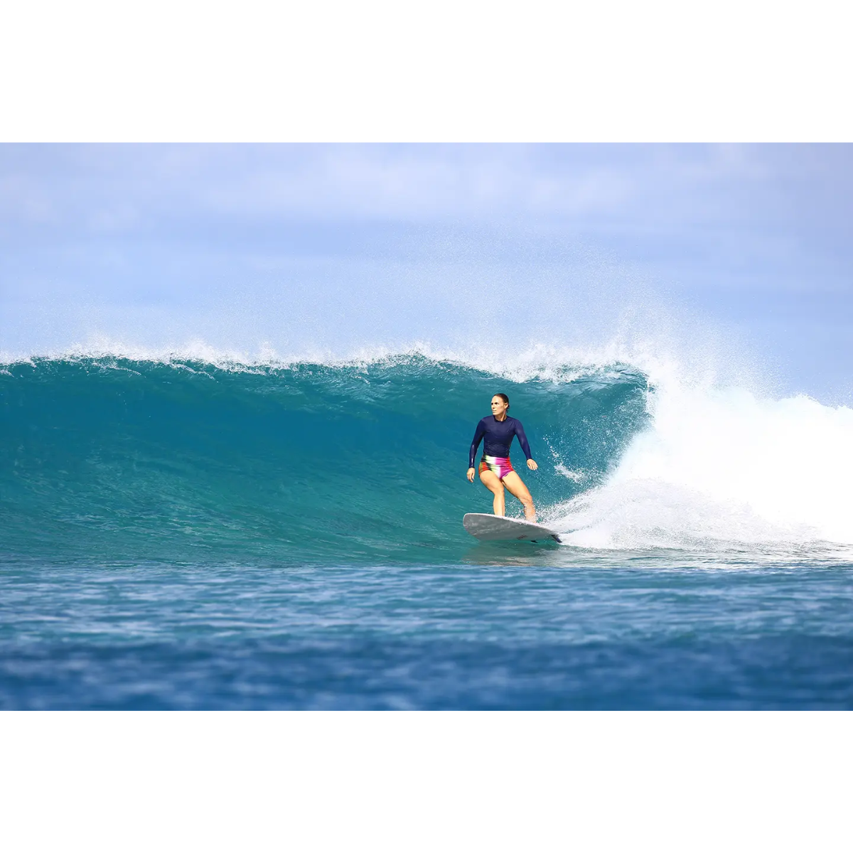 This board has the rocker tuned for a shortboard, and we have dropped the volume per size ratio so it fits within the Salt Gypsy mandate to suit women’s smaller frames.