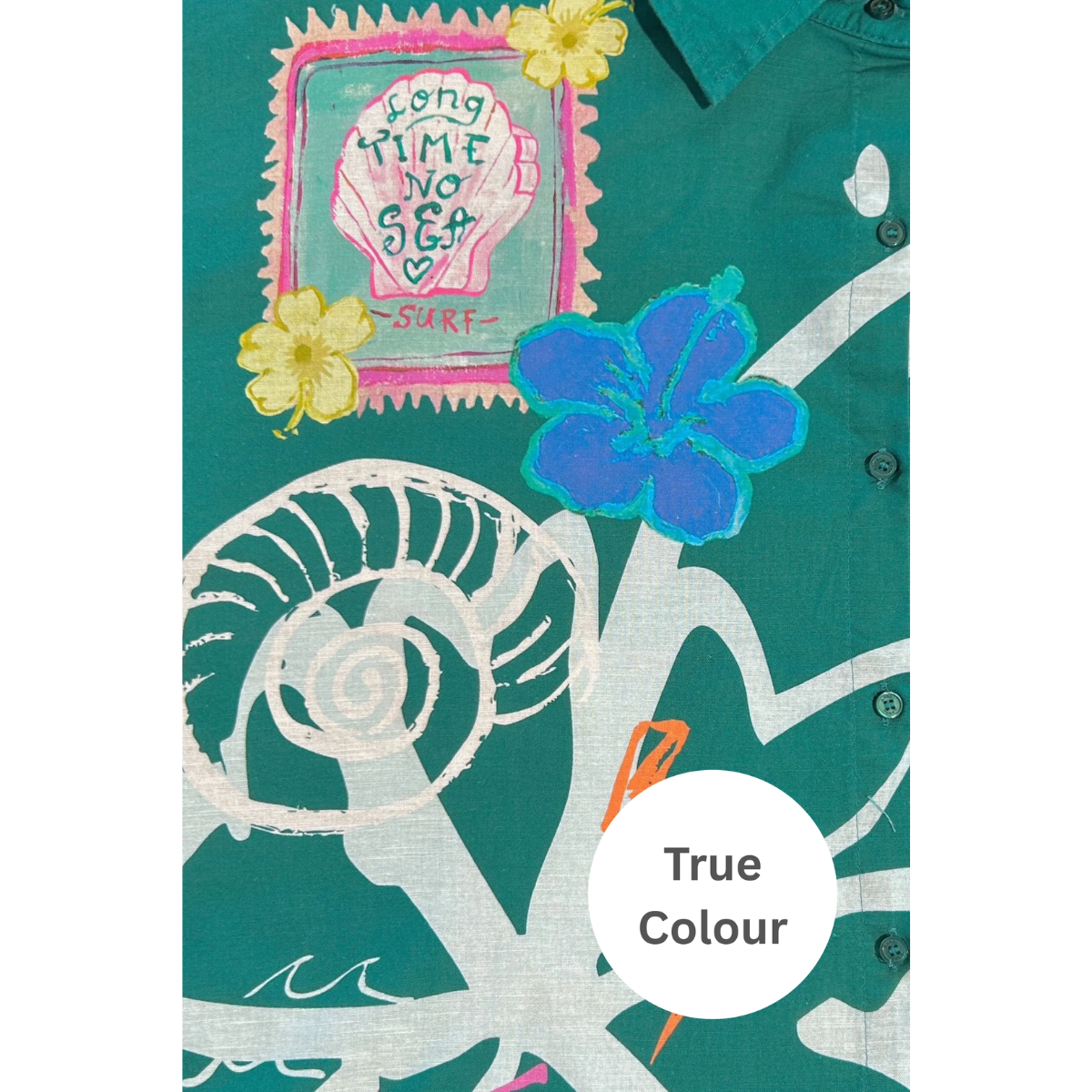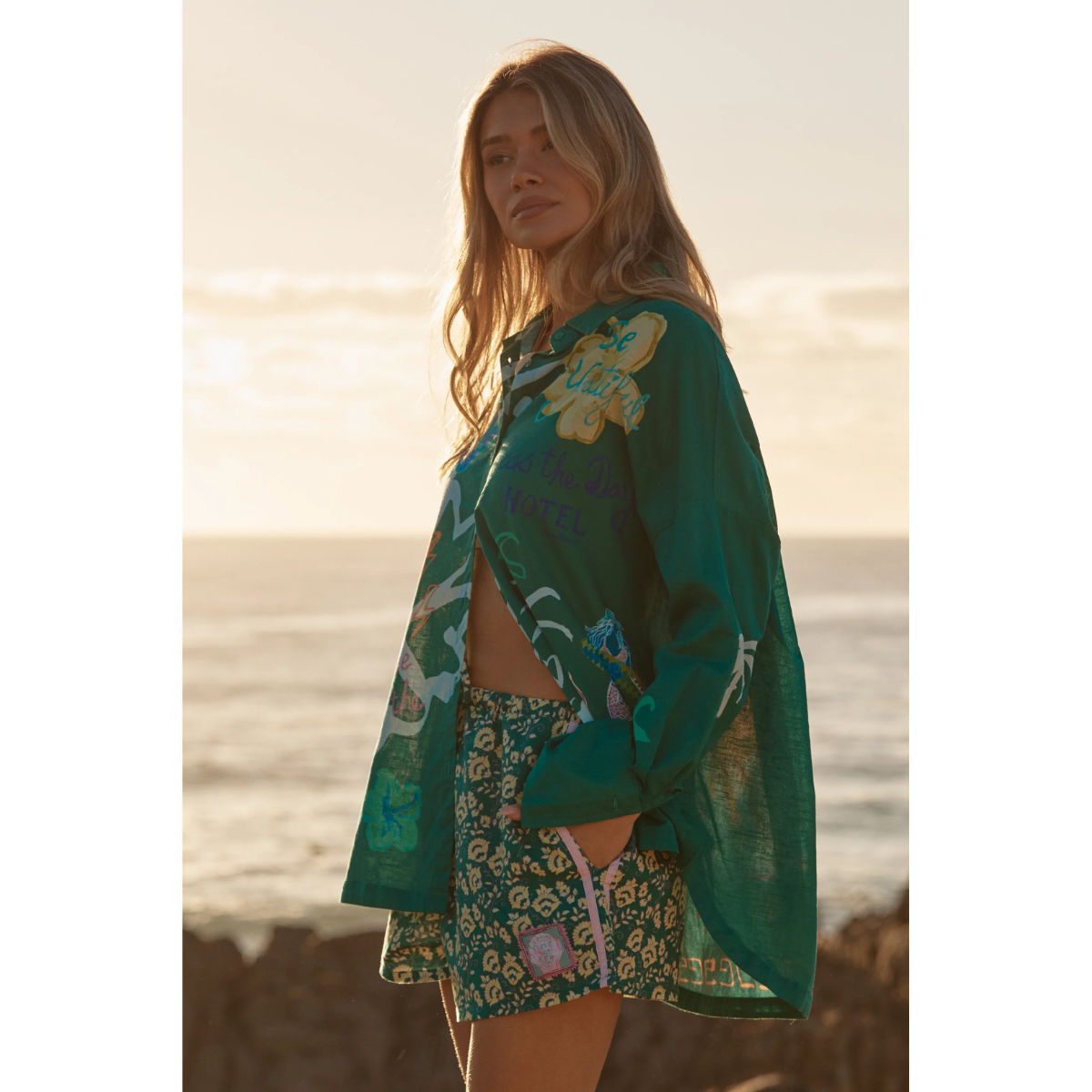 Featuring bold, hand-drawn Seas The Day artwork across the fabric, this long sleeve button-up brings together mermaids, shells, suns and scribbled details in true Sabbi style. Cut in an easy, loose fit and crafted from a lightweight, breathable fabric, its perfect worn open, softly buttoned or thrown on when the sun dips.
