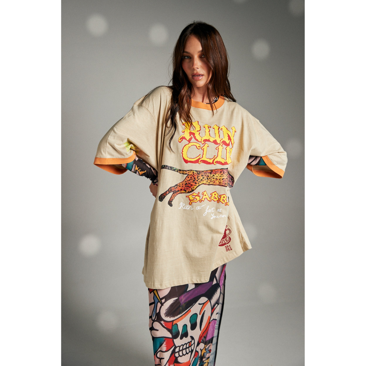 ⚡️💨 Catch us if you can — but good luck. The Run Club Dropout Tee is for the fast, the furious, and the fashionably late. Oversized and unapologetic, this soft sand-toned tee features a flame-licked vintage typeface, a cheetah mid-sprint, and the rallying cry: