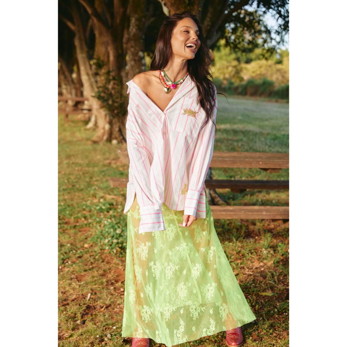 Say hola to the shirt that can do no wrong. The Don Julio Shirt - You Are Enough is Sabbi's iconic oversized button-up, reimagined in two fresh-as-hell stripe colourways: White with fluoro blue and green and white with fluoro pink.