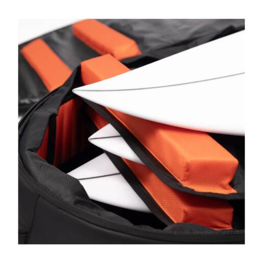 Positioned in the rail of the cover for you to stash and seperate your fins from your delicate boards. Each pouch has seperate sections, so your fins don't touch each other. 2x fin pouches for the double covers & 4x in the 3,4 & 5 board covers.
